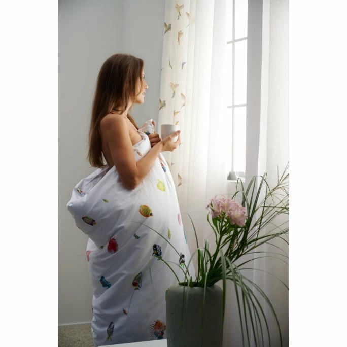 Mit der Moonlight Fidshi Bettwäsche von Apelt bringen Sie einen frischen Farbtupfer in Ihren Schlafbereich. Aus 100% OEKO-TEX STANDARD 100 und GOTS zertifizierter Premium-Baumwolle hergestellt, ist Fidshi mit fröhlich-bunten Südseefischen verziert. Der Kissenbezug verfügt zudem über eine farblich abgesetzte Paspel, was das optische Gesamtbild der Apelt Bettwäschegarnitur perfekt abrundet. Das zart glänzende Satingewebe hat einen weichen, seidigen Griff und ist – dank umweltfreundlichem und farbbeständigem Digitaldruckverfahren – ressourcenschonend hergestellt. Das 2-teilige Apelt Bettwäsche-Set ist besonders atmungsaktiv, pflege- und bügelleicht, trocknergeeignet und mit einem verdeckt eingenähten Markenreißverschluss ausgestattet. Lassen Sie sich von dem tollen Dessin und der zarten Haptik begeistern und erleben hohen Schlafkomfort mit dem Loft Dreams Fidshi Bettwäsche-Set aus dem Hause Apelt!