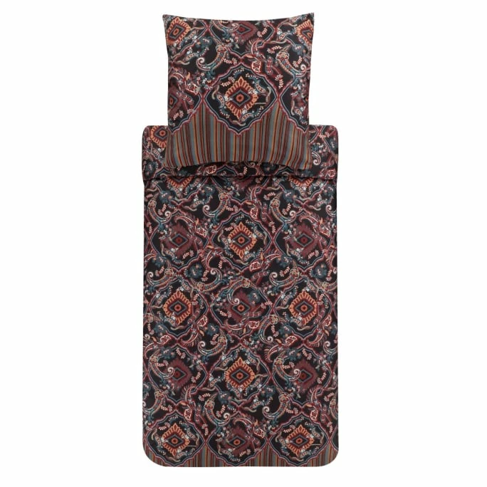 Die neue bassetti Granfoulard Herbst/Winter Kollektion erzählt die Geschichte eines wunderbaren Tages im Kreise lieber Menschen, die gemeinsam das Leben genießen. Farben und Geschmack verschmelzen dabei ganz im italienischen Stil, welchen man innerhalb und außerhalb des Hauses erleben kann. Holen Sie sich mit der hochwertigen Bettwäsche-Garnitur SULMONA aus der Limited Edition von bassetti das mediterrane Ambiente nach Hause. Das Design besticht durch eine moderne Interpretation des klassischen Kaschmir-Motivs. Die kunstvolle Verflechtung von Paisley-Ornamenten wurde von den typischen Rautenmustern der traditionellen Stoffe der Abruzzen inspiriert. Der schwarze Fond hebt die Silhouette der Kaschmir-Motive hervor und die ungewöhnlichen Farbkombination kommt damit besonders gut zur Geltung. Die Bordüre präsentiert sich im Kontrast dazu mit zarten Streifen und Mikro-Chevron-Motiven in Dégrade. Die Garnitur besteht aus feinem Satin, welches aus 100% reiner Baumwolle gefertigt ist. Zudem verfügen die Bezüge über einen praktischen Qualitätsreißverschluss, welcher ein leichtes Ab- und Beziehen ermöglicht. Mit der Bettwäsche-Garnitur SULMONA (Limited Edition) von bassetti vereinen sich höchster Schlafkomfort mit italienischer Dolce Vita. Tauchen Sie ein in die farbgewaltige und glanzvolle Welt von bassetti!