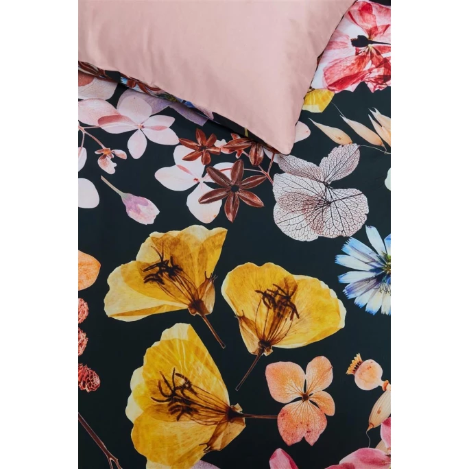 Die romantische Bettwäsche-Garnitur Dried Flowers von Beddinghouse im Wende-Design wird Ihnen schöne Träume bereiten. Die Vorderseite präsentiert sich mit einem Digitaldruck aus verschiedenen, getrockneten Blumen. Das farbenprächtige Motiv kommt auf dem dunklen Fond besonders gut zur Geltung, wodurch es Tiefe bekommt. Die Rückseite ist im Kontrast dazu im unifarbenen Design gehalten. Die dekorative Bettwäsche besteht aus reinem, glänzendem Mako-Satin, welches aus 100% Baumwolle gefertigt ist. Ein weiteres Highlight ist der praktische Reißverschluss, welcher für ein schnelles und bequemes Ab- sowie Beziehen sorgt. Wir bieten Ihnen die traumhafte Garnitur in zwei unterschiedlichen Größen in unserem AMBIENDO Shop an. Genießen Sie mit der Bettwäsche-Garnitur Dried Flowers von Beddinghouse den luxuriösen Schlafkomfort!
