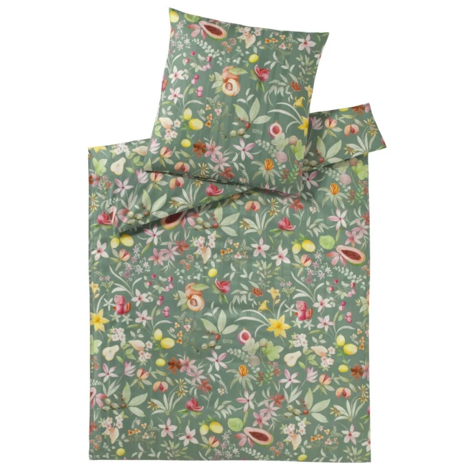 Kuschelig weich mit stilvollem Muster – die Bettwäsche Fruits aus dem Hause elegante überzeugt auf ganzer Linie! Sie ist über und über mit kleinen Blüten und Früchten in harmonischen Farben verziert. Die Herstellung aus reiner Baumwolle, welche zu feinem Mako-Satin verarbeitet wurde, sorgt für die hervorragenden Materialeigenschaften des Stoffs. Er ist wunderbar weich, gleichzeitig atmungsaktiv und liegt angenehm auf der Haut. Mithilfe eines verdeckten Reißverschlusses können Sie den Bettdecken- und Kissenbezug auf ein Inlet Ihrer Wahl ziehen. Selbstverständlich sind die Bezüge waschmaschinen- und trocknergeeignet. Bestellen Sie die Bettwäsche-Garnitur Fruits von elegante in einer von vielen Größen und Farben und erfreuen Sie sich jede Nacht an Qualität und Design!