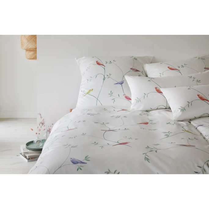 Vögel sind das Symbol von Freiheit, Frühling und Ferne. Mit Ihren Flügeln können Sie überall hin und leben den ewigen Traum des Menschen, zu fliegen. Zwar wachsen Ihnen mit den Bezügen von Garden Love keine Flügel, aber Ihrer Fantasie verleihen sie welche. Beim Anblick der zarten, kleinen Vögelchen, werden Sie sicher ins Träumen geraten. Die luftige, geschmeidige Bettwäsche von elegante aus Seiden-Satin umschmeichelt Sie wie eine leichte Brise. Dank seiner 100% Baumwolle ist die Stoffbeschaffenheit atmungsaktiv und lässt Sie angenehm schlafen. Die Seiden-Satin Bettwäsche ist bedruckt und für den einfach Wechsel mit einem Reisverschluss versehen. Sie erhalten die Bettwäsche in verschiedenen Größen und Farben. Außerdem gibt es die Kissenbezüge hier im AMBIENDO Shop auch einzeln zu bestellen. Wir wünschen Ihnen eine Gute Nacht und süße Träume.