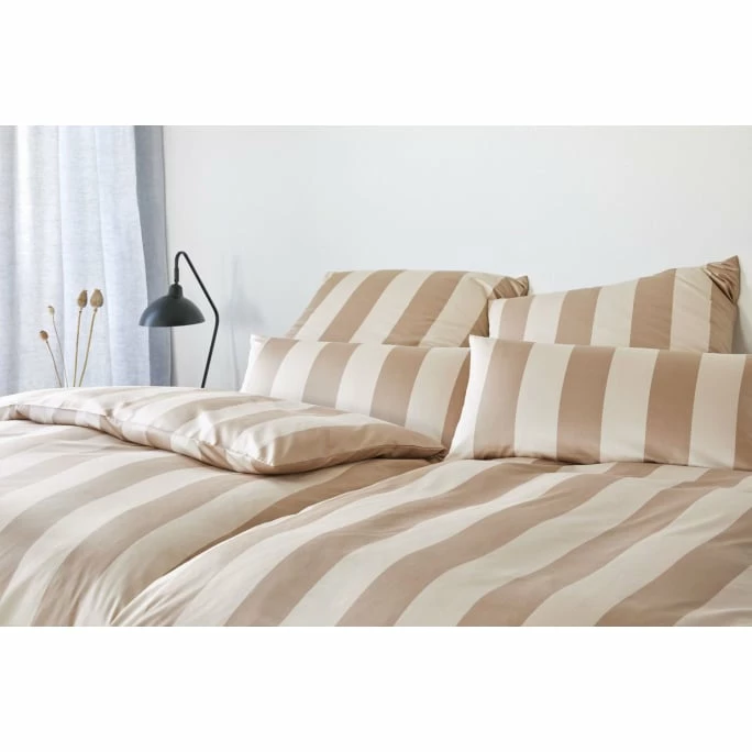 Keep it simple! Das elegante Natural Stripe Bettwäsche-Set mit dem Steifen-Design ist ein echter Klassiker im Schlafzimmer. Herrlich leicht und anschmiegsam fühlt sich die Bettwäsche auf der Haut an und garantiert hohen Schlafkomfort. Aus 100% feinster Baumwolle gefertigt ist die Natural Stripe Bettwäsche besonders hautfreundlich und dank dem praktischen Verschluss einfach abnehmbar. Das Natural Stripe-Set ist in unserem Ambiendo Shop in mehreren Größen und Farbstellungen erhältlich und passt perfekt in jede Einrichtung. Wenn Sie möchten, können Sie die Kissenbezüge auch einzeln bestellen. Lassen Sie sich von der geschmackvollen elegante Natural Stripe Bettwäsche bezaubern und bringen Sie die gemütliche Atmosphäre in Ihr Zuhause!
