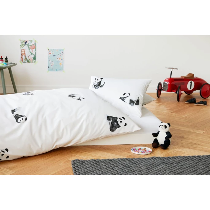 In China beheimatet verbringen diese possierlichen Tiere ihr Leben mit Essen und Schlafen und ab sofort verschönern Sie das Bettchen Ihrer Kinder. Fast wie ein Gute-Nacht Buch, warten die drolligen Pandabären, Ihr Kind in den Schlaf begleiten zu dürfen. Kuscheln Sie Ihre kleinen Familienmitglieder in den hochwertige Mako-Satin Stoff ein und erfinden Sie schöne Gute-Nacht-Geschichten rund um die kleinen Tierchen, die Ihre Kinder lieben werden. Die Panda Bear Kollektion von elegante ist nicht nur für Kinder schön anzusehen, auch Erwachsenen zaubern die schwarz-weißen Bären immer wieder ein Lächeln ins Gesicht. So muss niemand allein einschlafen und die gut gelaunten Pandas warten auch schon, wenn der Morgen anbricht.