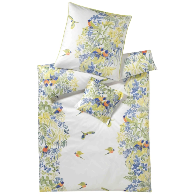 Mit der edlen Bettwäsche Paradiesvogel von Elegante machen Sie alles richtig. Das traumhaft schöne Design, das seinem Namen alle Ehre macht, ist ein echter Eyecatcher. Die Kombination aus stilechten Paradiesblumen und zierlichen Vögelchen begeistert sofort. Auch der hochwertige Material-Mix aus seidig-zartem Mako-Satin, der komplett aus feinster Baumwolle besteht, steht dem Motto der Serie ‘Paradise’ in nichts nach. Lassen Sie sich in die kuschelig-weiche Bettwäsche fallen und schlafen Sie paradiesisch gut. Damit starten Sie den nächsten Morgen wunderbar erholt und mit einem Lächeln auf den Lippen. Überzeugen Sie sich selbst von der herrlichen Qualität und dem wunderschönen Design der Bettwäsche-Garnitur Paradiesvogel von Elegante. Sie werden Sie nicht mehr missen wollen.