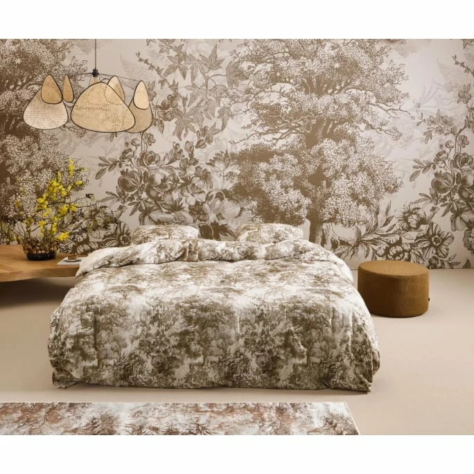 Eine Bettwäsche mit Geschichte! Über diese elegante Bettwäsche-Garnitur Aurelie von ESSENZA in harmonischer Farbgebung gibt es viel zu erzählen. Als Inspiration für dieses bildschöne Design diente der Toile de Jouy aus dem achtzehnten Jahrhundert. Dieser Stoff wurde von einem Textildrucker in der Nähe von Versailles mit romantischen Szenen des Landlebens, historischen Ereignissen oder biblischen Szenen, vorzugsweise in einer Farbe, bedruckt. Jetzt ist dieser schöne Druck mit einer modernen, einzigartigen Wendung zurück. ESSENZA entschied sich für Blumenmotive und raffinierte Illustrationen von Bäumen. Die Farbgebung macht es noch zeitgemäßer und verleiht dem Print einen frischen sowie femininen Touch. Die schlichte Rückseite präsentiert sich im Kontrast dazu im unifarbenen Design. Aus hochwertigem Baumwollsatin gefertigt und nach OEKO-TEX Standard 100 zertifiziert, ist das Set besonders glatt, atmungsaktiv und feuchtigkeitsregulierend. Es kann problemlos gereinigt und getrocknet werden. Die Bezüge verfügen zudem über einen praktischen Reißverschluss, wodurch ein bequemes Ab- und Beziehen garantiert ist. Überzeugen Sie sich selbst und erleben Sie höchsten Schlafkomfort mit der Satin Wendebettwäsche-Garnitur Aurelie von ESSENZA!
