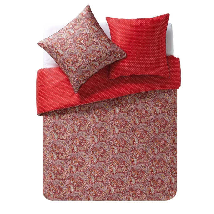 Die Bettwäsche-Garnitur Idole von Essix sorgt mit seinem aufwändig gestalteten Paisley-Design für Gemütlichkeit. Auf der Vorderseite bilden die Oranamente ein dichtes Muster. Auf der Rückseite der Wende-Bettwäsche wird es so fein angebildet, dass es wie ein Punktemuster wirkt. Die Bettwäsche von Essix ist aus hochwertiger Satin-Baumwolle gefertigt und sorgt dadurch für ein traumhaft weiches Gefühl beim Einschlafen. Der Bettbezug ist mit dekorativen Knöpfen versehen. Lassen Sie sich von Qualität und Design überzeugen!
