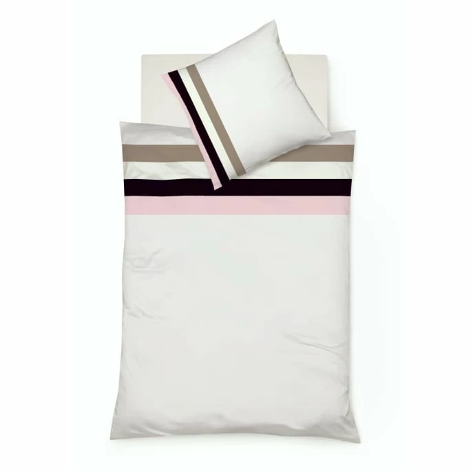 Die moderne Wendebettwäsche-Garnitur Colours K von fleuresse besteht aus hochwertigem Mako-Satin, welches aus 100% merzerisierter Baumwolle gefertigt ist. Sie überzeugt durch den weichen Griff und den hohen Komfort. Auch optisch macht die Garnitur einiges her: Auf der Vorderseite sind farblich aufeinander abgestimmte Satinstreifen in rosè, anthrazit und taupe auf edlem weißem Satin aufgesetzt. Die Rückseite ist im klassisch unifarbenen Weiß gehalten. Durch das feine Gewebe erhält die Wendebettwäsche-Garnitur Colours K von fleuresse einen wunderbar edlen Glanz. Lassen Sie sich verwöhnen!