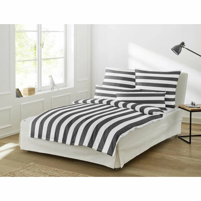 Von einem interessanten Streifendessin geprägt, präsentiert sich die Irisette Bettwäsche TAPE mit einzigartigen Eigenschaften und einem klassischen Look! Angesichts ihres hochwertigen Herstellungsprozesses und der besonders feinfädigen Baumwolle weist sie ausgezeichnete klimatische Eigenschaften auf und eignet sich daher perfekt als Ganzjahresbettwäsche. Zudem verleiht diese Premium-Qualität, aufgrund des hautsympathischen Satin-Gewebes und der anspruchsvollen Bindungsart, ein sanftes und anschmiegsames Hautgefühl. Die in Deutschland hergestellte Qualitätsbettwäsche ist zudem äußerst bügelleicht, atmungsaktiv, temperaturausgleichend und problemlos für den Trockner geeignet. Des Weiteren erleichtert Ihnen ein verdeckter Qualitäts-Reißverschluss das schnelle Auf- und Abziehen der Wäsche. Das stilvolle Design verwandeln Ihr Schlafzimmer im Handumdrehen in Ihre ganz persönliche Wohlfühloase. Wie alle Irisette Textilien ist auch die Satin-Qualität aus hochwertigen Grundgeweben und ausschließlich nach dem Oeko-Tex-Standard 100 hergestellt und zertifiziert. Dieses Siegel sagt aus, dass der Artikel TAPE inklusive all seiner Bestandteile von dem unabhängigen Institut Hohenstein auf Schadstoffbelastung geprüft wurde. Genießen Sie Ihre wohlverdiente Bettruhe, mit der hochwertigen Bettwäsche TAPE von Irisette.