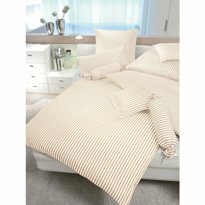 In einem wunderschönen Streifen-Dessin präsentieren sich die Modern Classic 3912 Produkte aus dem Hause Janine. In einem dezenten und schmal angelegten Streifendessin ist der Bettbezug zeitlos und versprüht gleichzeitig eine charmante Wirkung in Ihrem Schlafraum. Die frischen Farben erzeugen eine freundliche und zugleich wohnliche Atmospähre. Durch das Seidenfinish glänzt der Bettbezug sehr edel, was optisch besonders anziehend wirkt. Die Janine Qualitäts-Bettwäsche-Produkte aus der Modern Classic Serie sind aus hautfreundlichem Mako-Satin hergestellt, einem leichten Baumwollmaterial, welches durch seine besondere Hautsympathie, Atmungsaktivität und Feuchtigskeitsregulierung gerne für die Bettwäscheherstellung eingesetzt wird. Das ausgewählte Mako-Satin-Material ist aus einer dichtgewebten, feinfädigen Mako-Baumwolle in naturreiner und gekämmter Qualität hergestellt. Entdecken Sie das Modern Classic Bettwäsche-Sortiment – Sie werden begeistert sein.
