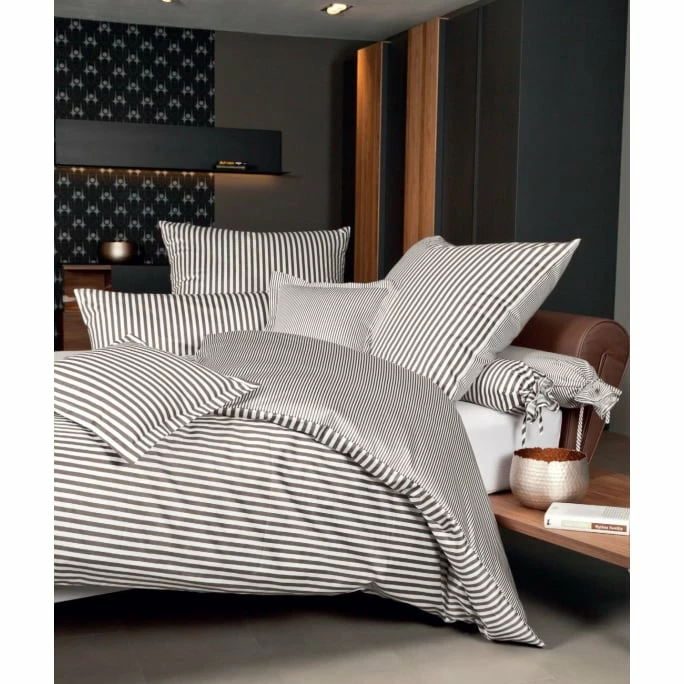 In einem wunderschönen Streifen-Dessin präsentieren sich die Modern Classic 3912 Produkte aus dem Hause Janine. In einem dezenten und schmal angelegten Streifendessin ist der Bettbezug zeitlos und versprüht gleichzeitig eine charmante Wirkung in Ihrem Schlafraum. Die frischen Farben erzeugen eine freundliche und zugleich wohnliche Atmospähre. Durch das Seidenfinish glänzt der Bettbezug sehr edel, was optisch besonders anziehend wirkt. Die Janine Qualitäts-Bettwäsche-Produkte aus der Modern Classic Serie sind aus hautfreundlichem Mako-Satin hergestellt, einem leichten Baumwollmaterial, welches durch seine besondere Hautsympathie, Atmungsaktivität und Feuchtigskeitsregulierung gerne für die Bettwäscheherstellung eingesetzt wird. Das ausgewählte Mako-Satin-Material ist aus einer dichtgewebten, feinfädigen Mako-Baumwolle in naturreiner und gekämmter Qualität hergestellt. Entdecken Sie das Modern Classic Bettwäsche-Sortiment – Sie werden begeistert sein.