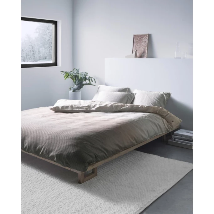 Der moderne Look der Bettwäsche-Garnitur Lalani von Marc O`Polo sorgt für mehr Frische in Ihrem Schlafzimmer! Auf der Vorderseite der Wendebettwäsche zeigt sich ein sanfter Farbverlauf, die Rückseite wurde dagegen reduziert in einer schlichten Unifarbe gehalten. Je nach Bedarf können Sie also die Seiten wechseln. Durch die hochwertige Baumwoll-Qualität entsteht ein wohlig warmes und kuschelweiches Gefühl auf der Haut und dank der feuchtigkeitsregulierenden Eigenschaften des Baumwollgewebes herrscht stets ein angenehmes Schlafklima. Selbstverständlich ist die Garnitur absolut pflegeleicht und farbecht. Die Marke Marc O`Polo blickt auf eine lange Geschichte zurück. Seit 1967 werden mit ständigen Aktualisierungen zeitgemäße Produkte aus besten Materialien hergestellt, die sich über die Jahre weltweit etabliert und bewährt haben. Machen Sie es sich gemütlich, mit der Bettwäsche Lalani!
