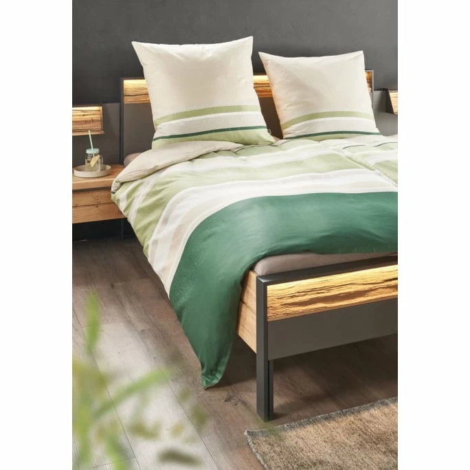 Streifen oder Pünktchen? Das kuschelige zweiteilige Bettwäsche-Set Mixed von Musterring bietet Ihnen beides: Die Vorderseite der Bezüge ist mit unterschiedlich breiten Querstreifen versehen, die Rückseite zeigt ein Dessin aus hellen Minipunkten. Das Streifenmuster wird von einer Hauptfarbe dominiert – zur Wahl stehen Ihnen unterschiedliche, moderne Farbkombinationen. Alle Textilien stammen aus nachhaltiger Produktion und bestehen zu 100% aus Baumwolle (BCI). So betten Sie sich nicht nur angenehm hautfreundlich, sondern leisten auch gleich noch einen wertvollen Beitrag zur Umwelt. Der Bettbezug ist mit einem praktischen Reißverschluss versehen und sorgt somit für ein angenehm leichtes Wechseln der Garnitur. Kuscheln Sie sich ein in diese wundervoll modische Bettwäsche und bestellen Sie jetzt das Set Mixed aus dem Hause Musterring in einer der unterschiedlichen Größen!