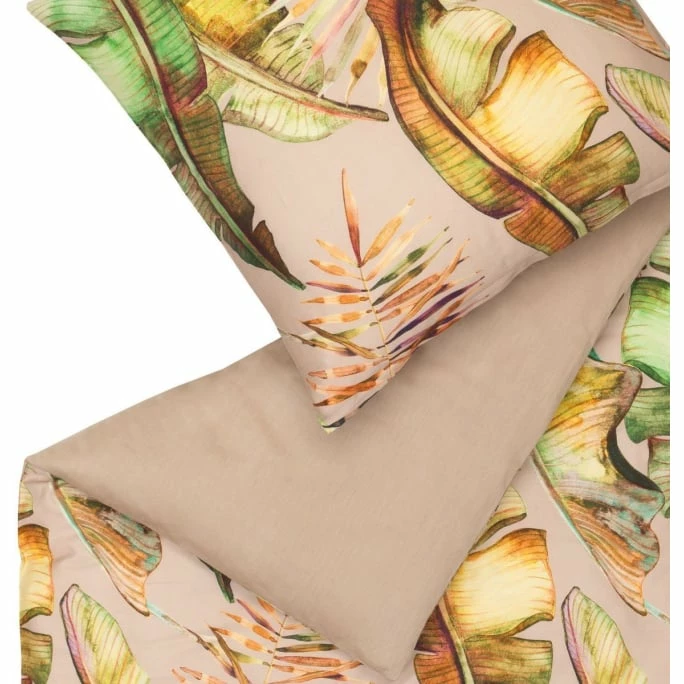 Wer Lust auf Dschungel-Feeling im Schlafzimmer hat, liegt mit dem zweiteiligen Bettwäsche-Set Jungle Mood richtig. Die Vorderseite des weichen Baumwoll-Satin-Bettbezuges bedecken tropische Blätter und die Rückseite der Bettwäsche ist einfarbig. Verdeckt eingenähten Reißverschlüsse machen das Beziehen von Kissen-Inlett und Bettdecke zum Kinderspiel. Machen sie Ihr Schlafzimmer im Handumdrehen zur Wohlfühloase-Oase mit dem Schöner Wohnen Jungle Mood Bettwäsche-Set.