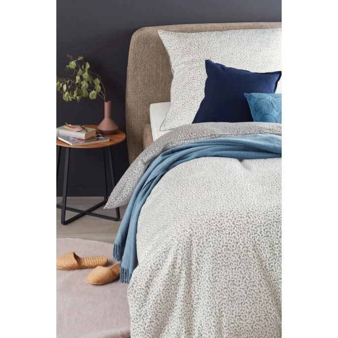 Sie mögen es modern und doch ein wenig verspielt? Dann ist das wunderschöne Satin-Bettwäsche-Set Minimo von Schöner Wohnen genau das Richtige für Sie. Aus 100% zart glänzender Baumwolle gefertigt ist die zeitlose Wendebettwäsche einfach ein echter Hingucker. Die Vorderseite ist in einem hellen Allover-Blättchenmuster gehalten, während die Rückseite dasselbe Muster in intensiver Farbgebung zeigt. Dieser raffinierte Hell-Dunkel-Kontrast gibt der Minimo Bettwäsche einfach einen ganz besonderen Touch. Die farblich abgestimmte Paspelierung am Kissenbezug und der praktische Reißverschluss runden das Gesamtbild perfekt ab. Die pflegeleichte Garnitur Minimo verfügt über ausgezeichnete klimatische Eigenschaften, ist waschmaschinen- und trocknergeeignet und in drei verschiedenen Farb- und Größenvarianten erhältlich. Ab einer Bettbezug-Größe von 200 x 200 cm sind übrigens zwei Kopfkissenbezüge von jeweils 80 x 80 cm im Set enthalten. Und wenn Sie es besonders kuschelig mögen: Hier im Shop bietet AMBIENDO Ihnen – passend zur Minimo Satin-Wendebettwäsche – den tollen Deko-Kissenbezug Piccola in vier unterschiedlichen Farben an. Bringen Sie frischen und modischen Wind in Ihren Schlafbereich und erleben erholsame Wohlfühlstunden mit der zarten Mako-Satin Bettwäsche von Schöner Wohnen!
